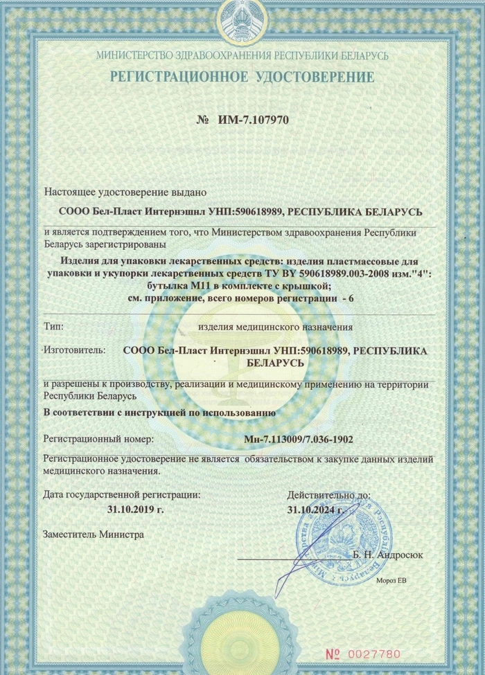 JC “Bel-Plast International” Ltd. has been manufacturing plastic products for medicines for more than ten years. Once again, the products passed state re-registration, and are allowed for production, sale and medical use on the territory of the Republic of Belarus.