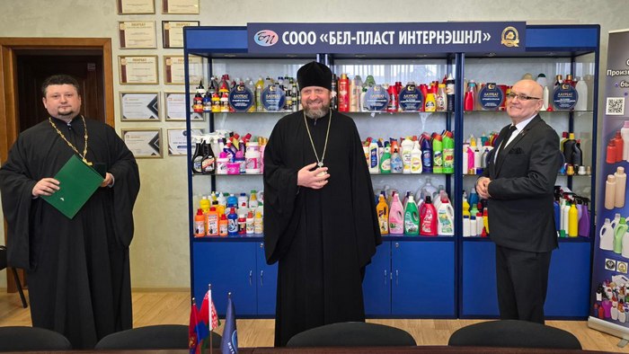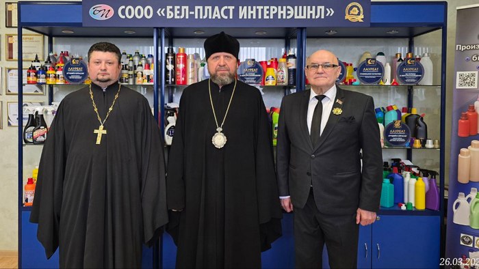 In connection with the upcoming 70th anniversary of Anatoly Velikin General Director of the enterprise on March 26, 2025, His Grace, Most Reverend Porfiry, Bishop of Lida and Smorgon accompanied by the secretary of the Lida diocese, Archpriest Maxim Tsigel visited JC "Bel-Plast International" Ltd.