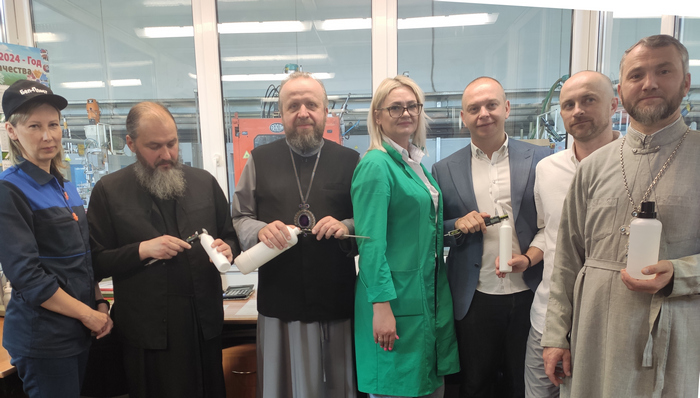 Today, as part of a working visit, Bishop Porfiry of Lida and Smorgon visited JC "Bel-Plast International" Ltd., accompanied by Dean Archpriest Rostislav Solovyov, Priest Igor Evtukhovich, rector of St. Georges Church in Brest, benefactors of this temple. During the visit, an acquaintance with the enterprise and the production process of plastic packaging was carried out.