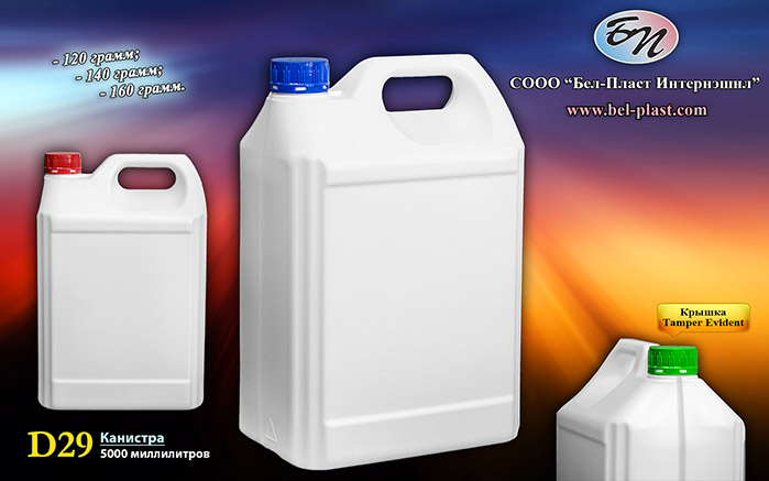 JC "Bel-Plast International" Ltd. produces the canister D29, capacity 5 liters. The canister is designed for prepackaging, safe transportation and storage of household chemical products.