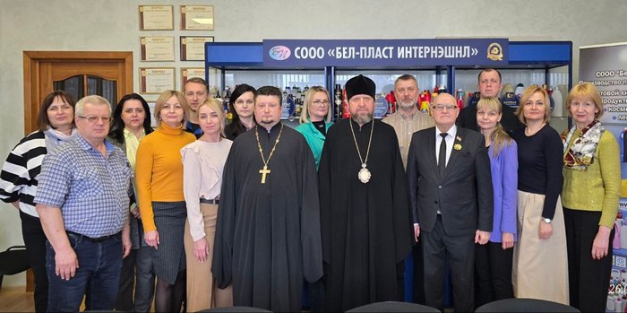 In connection with the upcoming 70th anniversary of Anatoly Velikin General Director of the enterprise on March 26, 2025, His Grace, Most Reverend Porfiry, Bishop of Lida and Smorgon accompanied by the secretary of the Lida diocese, Archpriest Maxim Tsigel visited JC "Bel-Plast International" Ltd.