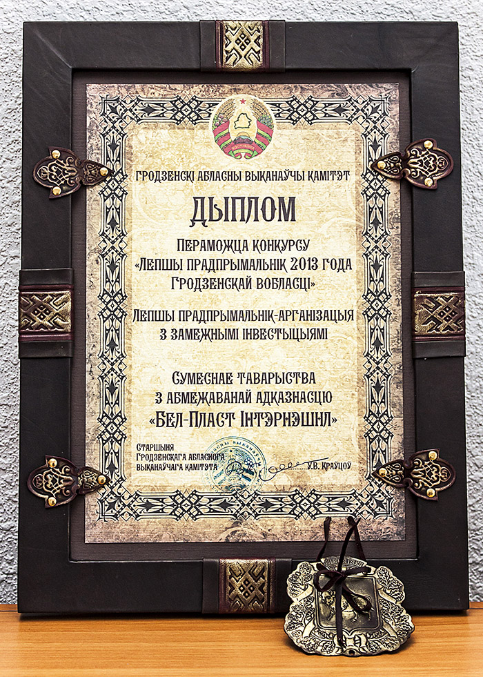 JC “Bel-Plast International” Ltd. has become the winner of the competition “The best entrepreneur of Grodno region 2013” in the category “The best entrepreneur - organization with foreign investments”. According to the results of financial and economic activity for 2013 among legal entities and individual entrepreneurs, our company has become one of the most successful companies in the region and showed the best results of work in 2013.