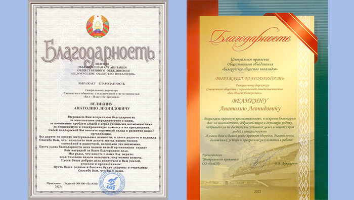 JC "Bel-Plast International" Ltd. has been providing active charitable assistance to institutions, organizations and private persons for many years, and has directly supported the disabled community from its founding to this day.
