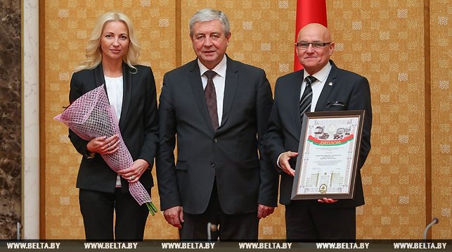 The ceremony of awarding the laureates of the Government Prize for achievements in the field of quality in 2017. National Library of the Republic of Belarus, Minsk.