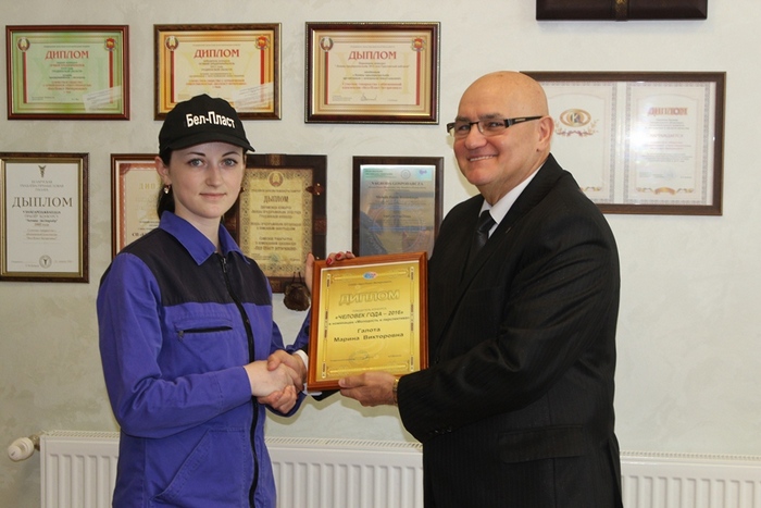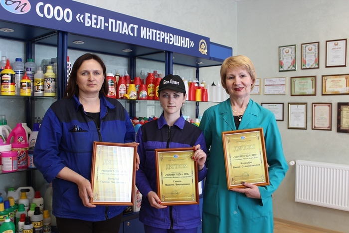 For a number of years on the eve of the professional holiday Chemists Day JC "Bel-Plast International" Ltd. determines the best of the best in three categories. This year the winners of the contest "Man of the Year" were determined in such nominations as "A master of his/her craft", "The best Manager" and "Youth and Prospects". Chief technologist Yanina Yalovskaya won in the nomination "A master of her craft", the warehouse manager Galina Vilbik - in the nomination "The best Manager", Marina Galota - in the nomination "Youth and Prospects".