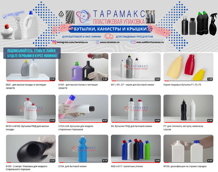 Nasz przedstawiciel na terytorium Federacji Rosyjskiej uruchomił kanał YouTube ze szczegołowymi wizualizacjami wideo opakowan z tworzyw sztucznych o pojemnosci od 250 ml do 6000 ml.: