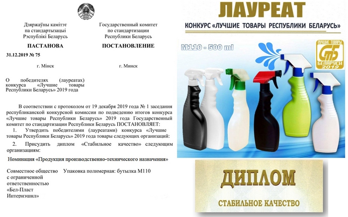JC «Bel-Plast International»Ltd. 17 lat z rzędu (2003-2019 lata) otrzymał tytuł laureata konkursu «Najlepsze towary Republiki Białoruś».