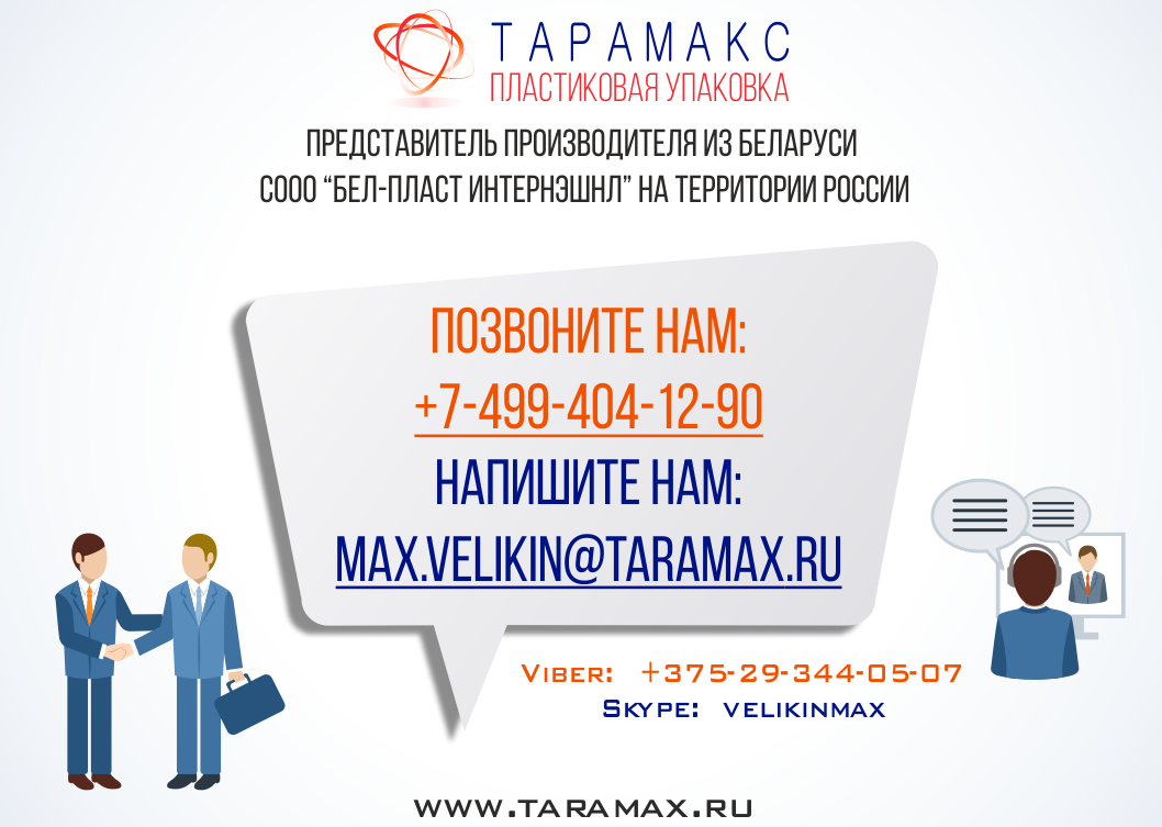 "TARAMAX" Sp. z o.o. jest rezydentem Rosji i oferuje pełny asortyment plastykowych opakowań produkcji JC "Bel-Plast International" Ltd. dla chemii gospodarczej i profesjonalnej, do produktów spożywczych, kosmetyków i środków leczniczych: wysokiej jakości butelki, pojemniki, kanistry, nakrętki, łyżeczki i zatyczki.