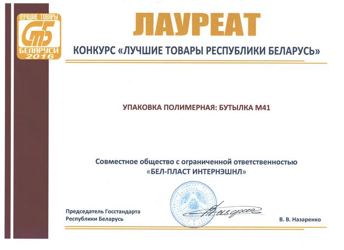 По итогам 2016 года в номинации «Продукция производственно-технического назначения» победа присуждена упаковке полимерной: бутылке М41, предназначенной для хранения продуктов бытовой химии.