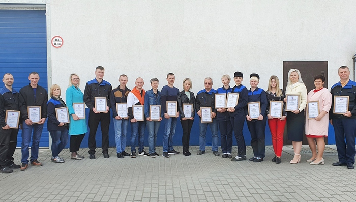 За добросовестный труд, соблюдение требований охраны труда и экологического законодательства были объявлены благодарности девятнадцати работникам предприятия: Банцевич Анне Францевне, укладчику-упаковщику 3 разряда, Богдевич Виктории Генриковне, укладчику-упаковщику 4 разряда, Винча Владимиру Станиславовичу, мастеру смены, Воробью Александру Ивановичу, наладчику оборудования в производстве изделий из пластмасс 4 разряда, Гавриленко Любови Викторовне, укладчику-упаковщику 3 разряда, Губейко Вадиму Сергеевичу, мастеру по ремонту оборудования, Дроб Екатерине Сергеевне, укладчику-упаковщику 3 разряда, Ждановой Елене Владимировне, контролеру полимерных материалов 4 разряда, Индура Сергею Михайловичу, главному энергетику, Иодко Татьяне Станиславовне, укладчику-упаковщику 4 разряда, Киевицкой Анне Казимировне, заместителю главного бухгалтера, Лабовкину Анатолию Николаевичу, главному инженеру, Лисовской Анне Викторовне, контролеру полимерных материалов 4 разряда, Макаревич Светлане Владимировне, инженеру-технологу, Мамойко Ирине Чеславовне, главному бухгалтеру, Новогродскому Виктору Антоновичу, дробильщику 4 разряда, Пильчук Наталье Ивановне, начальнику отдела технического контроля, Садовскому Александру Дмитриевичу, наладчику оборудования в производстве изделий из пластмасс 4 разряда, Саковичу Павлу Дмитриевичу, начальнику цеха.
