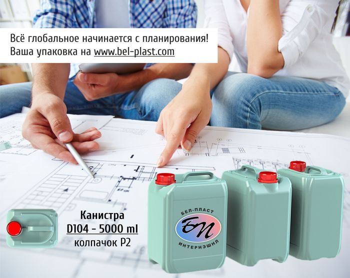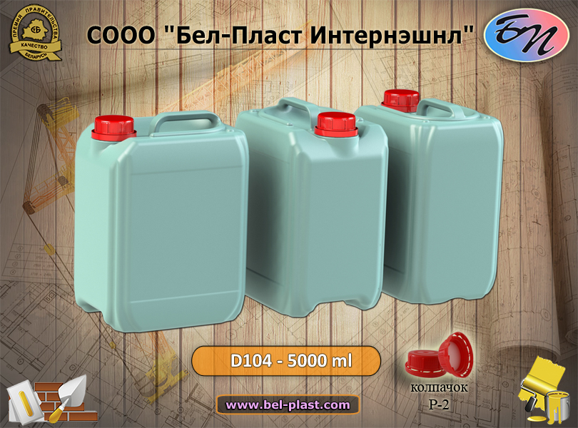 В 2016 году СООО "Бел-Пласт Интернэшнл" приступило к производству штабелируемой канистры D104 емкостью 5 литров предназначенной для фасования, безопасной транспортировки и хранения: